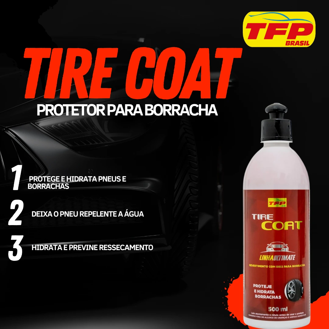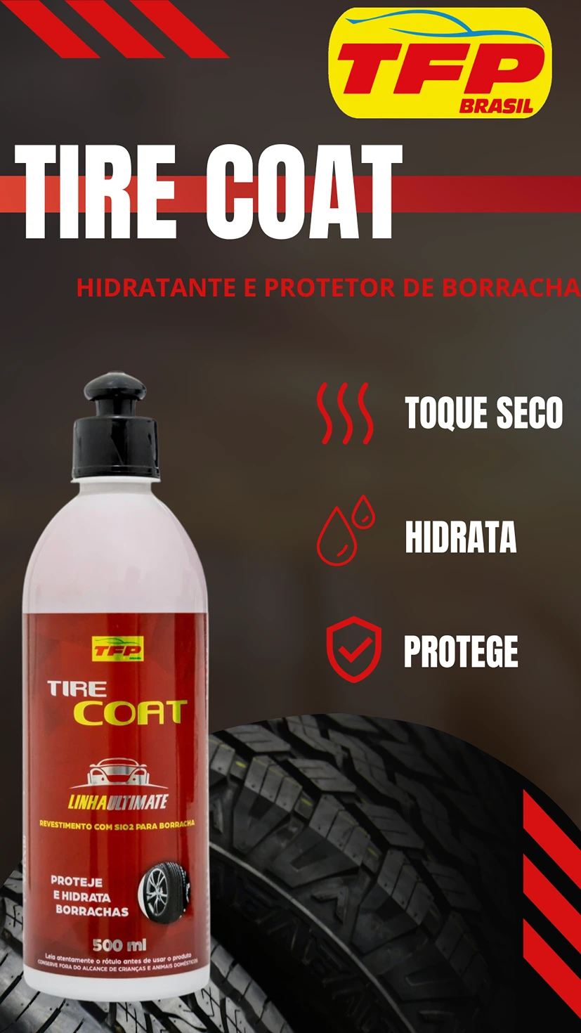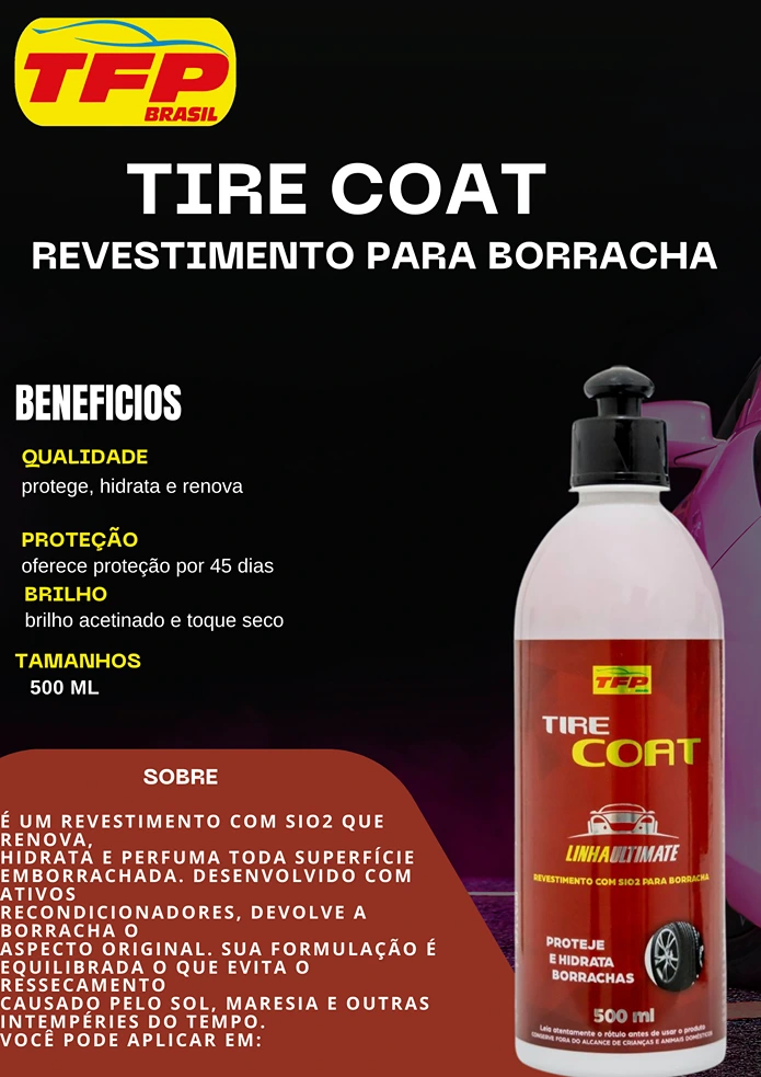 O revestimento de pneu Tire Coat 500ml (1 unidade) da marca TFP é um produto de alta qualidade que vai te surpreender. Este produto, com Sio2, proporciona um efeito Black 3D, dando aos seus pneus um aspecto novo. Além disso, é um revestimento permanente que não sai com água, garantindo uma proteção duradoura contra os elementos.